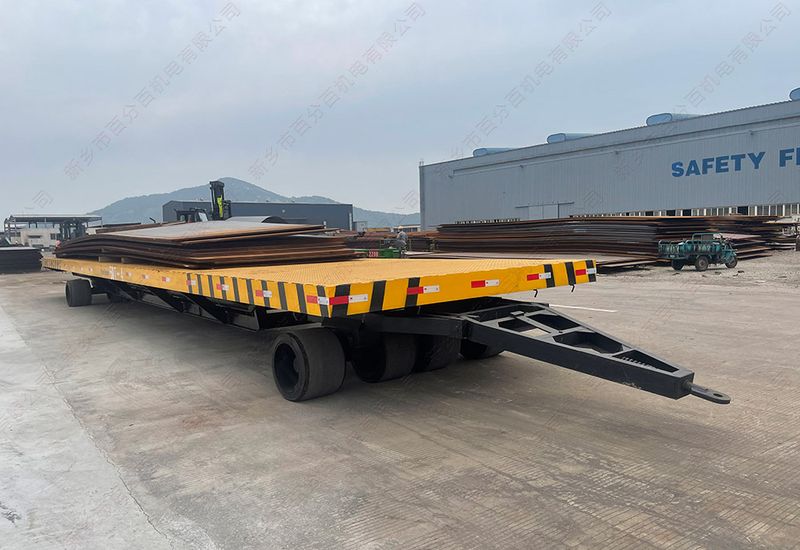 膠輪無軌平板車是一種常見的物流設(shè)備,它通常用于工廠和倉庫中的貨物搬運(yùn)。這種設(shè)備的主要特點(diǎn)是它沒有軌道,它使用膠輪來移動(dòng)和搬運(yùn)貨物。